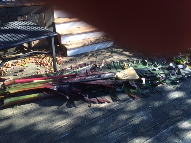 At some point you will need to dig your plant. These can be deceptively heavy and most of the weight comes from the water that they contain. The physical material that make up the top growth of an Ensete is pretty insignificant though the rhizome itself can be quite heavy. Its stem and mid-rib structures are akin to Celery with large open cells and fibers tying them together. Cut one and water flows out. I cut the whole plant off just below where the leaf blades begin. It takes one swing of a machete. There is little resistance.