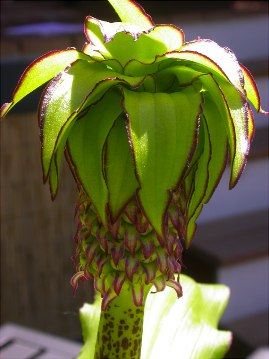 Here’s one of my little experiments of ‘neglect’. Sometimes the pots are just too big and heavy to haul down to my basement storage, not to mention the limited space there, so I position them up against my house, under roof overhangs, out of the wind and rain. Many things I grow in pots, can take a few degrees of freeze overnight, but when we are supposed to have a period of prolonged freezing, when highs are forecasted to remain below the mark, I haul many of them in, otherwise outside they stay. Then, out they go when it warms back up above freezing to a protected spot. The pots in question, the biggest/heaviest, have been out all winter so far, sequestered under the roof on our deck. They were not pulled in or covered during the first substantial cold snap and I’ve been surprised so far. This is Tuesday noon-ish and it’s 34deg.