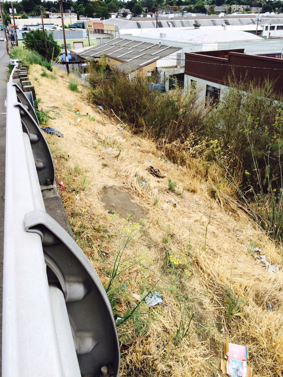 Holgate Overpass – the northeast approach. This was taken Aug. 28 of the landscape cut down in April showing regrowth in a hot drought year.