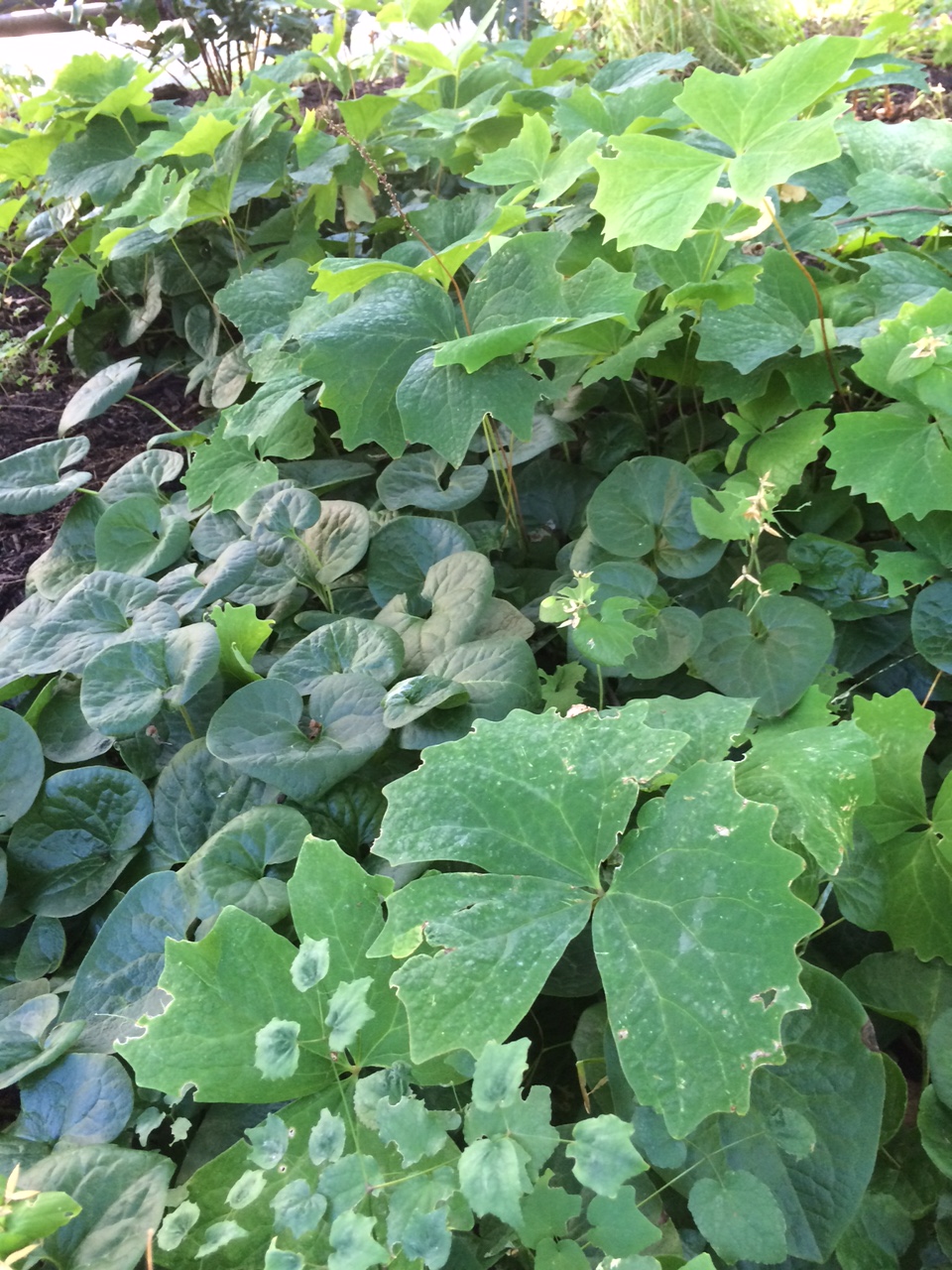 Most of my plantings are still there. The two beds that flank the NE entrance to Champman Sq. are doing well. Originally planted because the turf areas were not accessible to our mowing equipment given the chain fences, the benches and the Gingko trees planted there, I planted them with a woodland theme utilizing a variety of native groundcovers, e.g., Achlys triphylla, Asarum caudatum and Vancouveria hexandra with a mixture of others from Asia, like Ardesia japonica, and Europe. Mimicking the Bamboo’s form and texture on the other side, there is a Sambucus nigra ‘Black Lace’ standing like a negative of its partner, with the bright chartreuse form of Ribes sanguineum ‘Brocklebankii’ lighting the space beside it. Epimediums, Helleborus x hybridus repeat on both sides along with Daphne tangutica. Golden foliage of Carex elata ‘Bowle’s Golden’ serves to brighten the shade, Iris foetidissima ‘Variegata’ adds its almost white striping on its evergreen foliage. Hosta ‘Frances Williams’ contributes its blue and gold. Dicentra spectabilis ‘Gold Heart’ contrasts with Actea simplex ‘Black Negligee’ adding more light and contrast. Mahonia gracillipes jumps in and is repeated across the street at the opposing entry into Lownsdale. A variety of distinctive ferns add to the textural mélange along with Rhododendron yakushimanum ‘Teddy Bear’ and Clethra alnifolia ‘Ruby Spice’, while Cardiocrinum giganteum explodes out of the ground in spring. All of these bump shoulders with one another beneath the growing Gingkos. (The nearby Elms contribute thousands of seedlings that must be pulled each summer.)