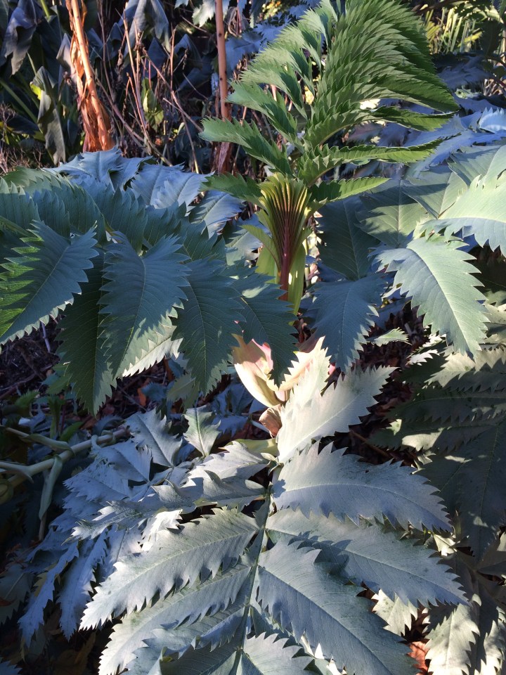 Melianthus major, one of my favorite textural foliage plant is a zn from South Africa. I have lost several of these in the past, but now consistently mulch it heavily with leaves. I think part of the problem was my ‘heavy’ soil so organic matter helps as well.