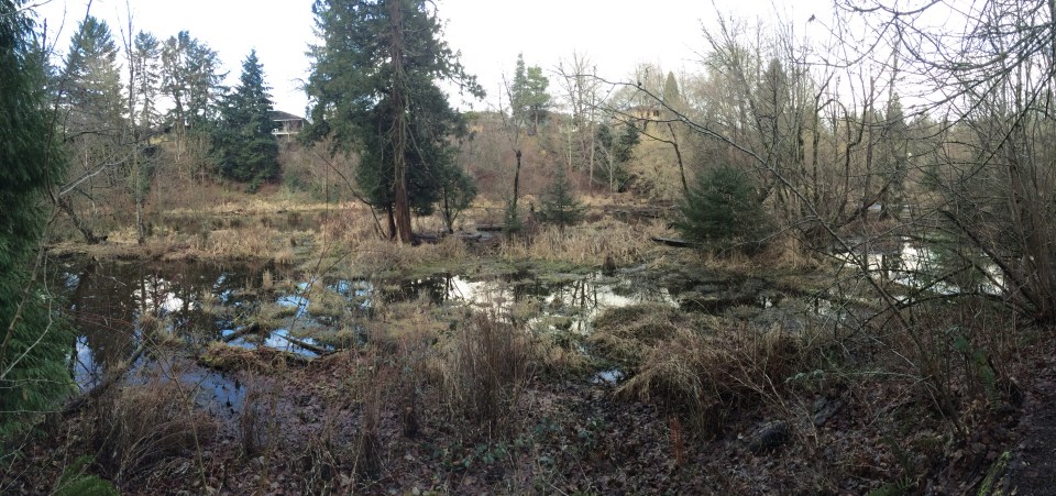Looking north from the south trail near the east end where tje ‘Lake’ begins to transition to marsh. Every area within the Canyon possess a degree of complexity that would be overwhelming to most garders. Most of us will never have to cope with a marsh.
