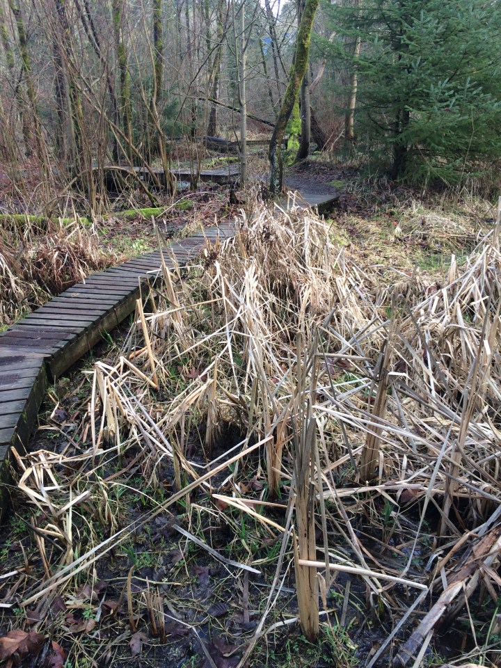 IMG_4502 ← Previous Next → Many of the east, marsh, end trails are raised like this one cutting across this patch of Cat Tails. A series of these connect several of the ‘islands’.