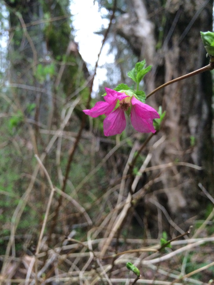 IMG_4767 ← Previous Next → One of my favorite native harbingers of spring, these magenta blooms of our native Salmon Berry, Rubus spectabilis, growing next to the creek.