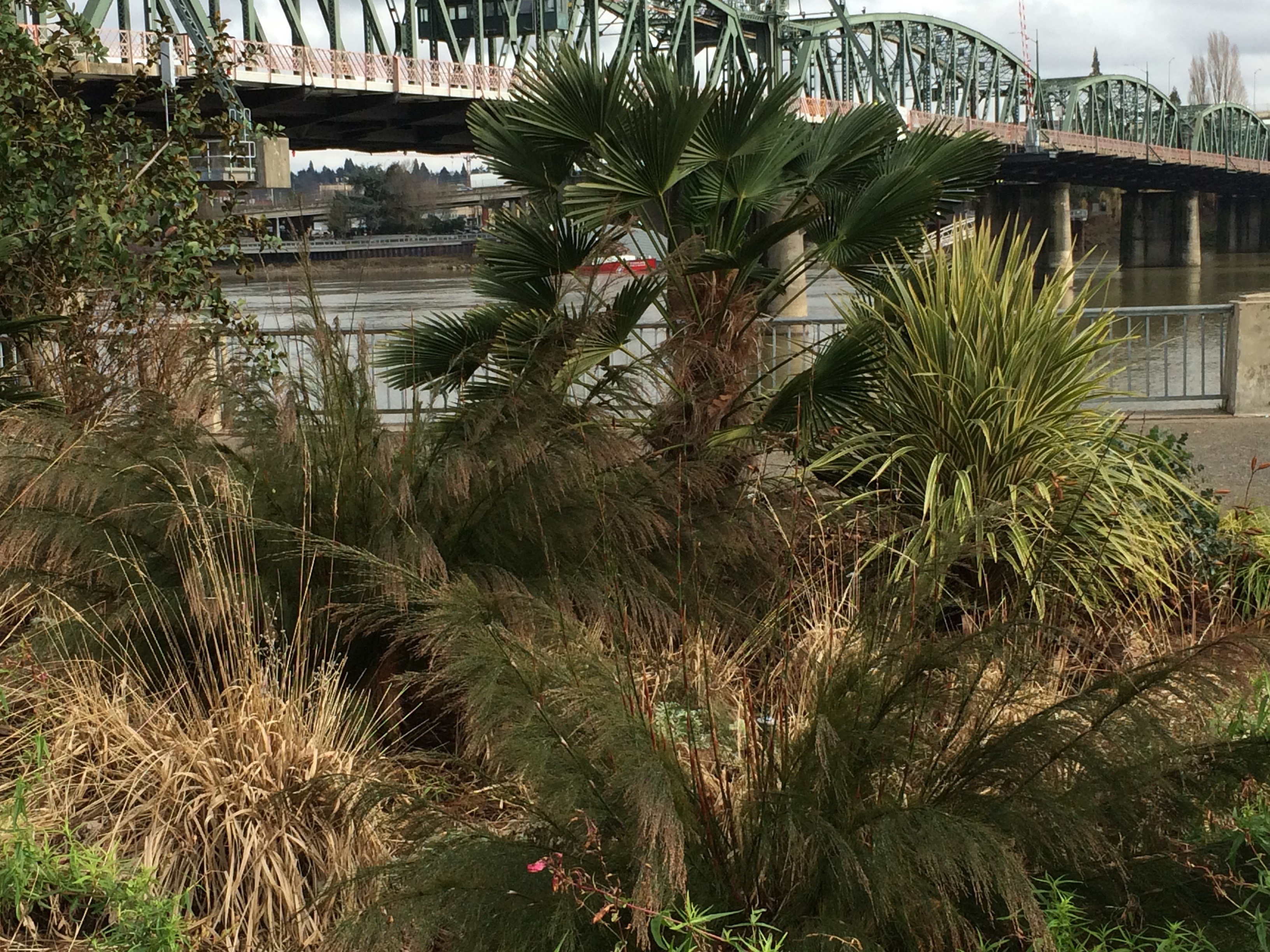 IMG_4559 ← Previous Next → Winter structure. This photo, taken in February ’16, shows evergreen substance of the Trachycarpus wagnerianus, Cordyline and the wispy Rhodocoma capensis solidly above the deciduous Molinia, at least until it is cut down.