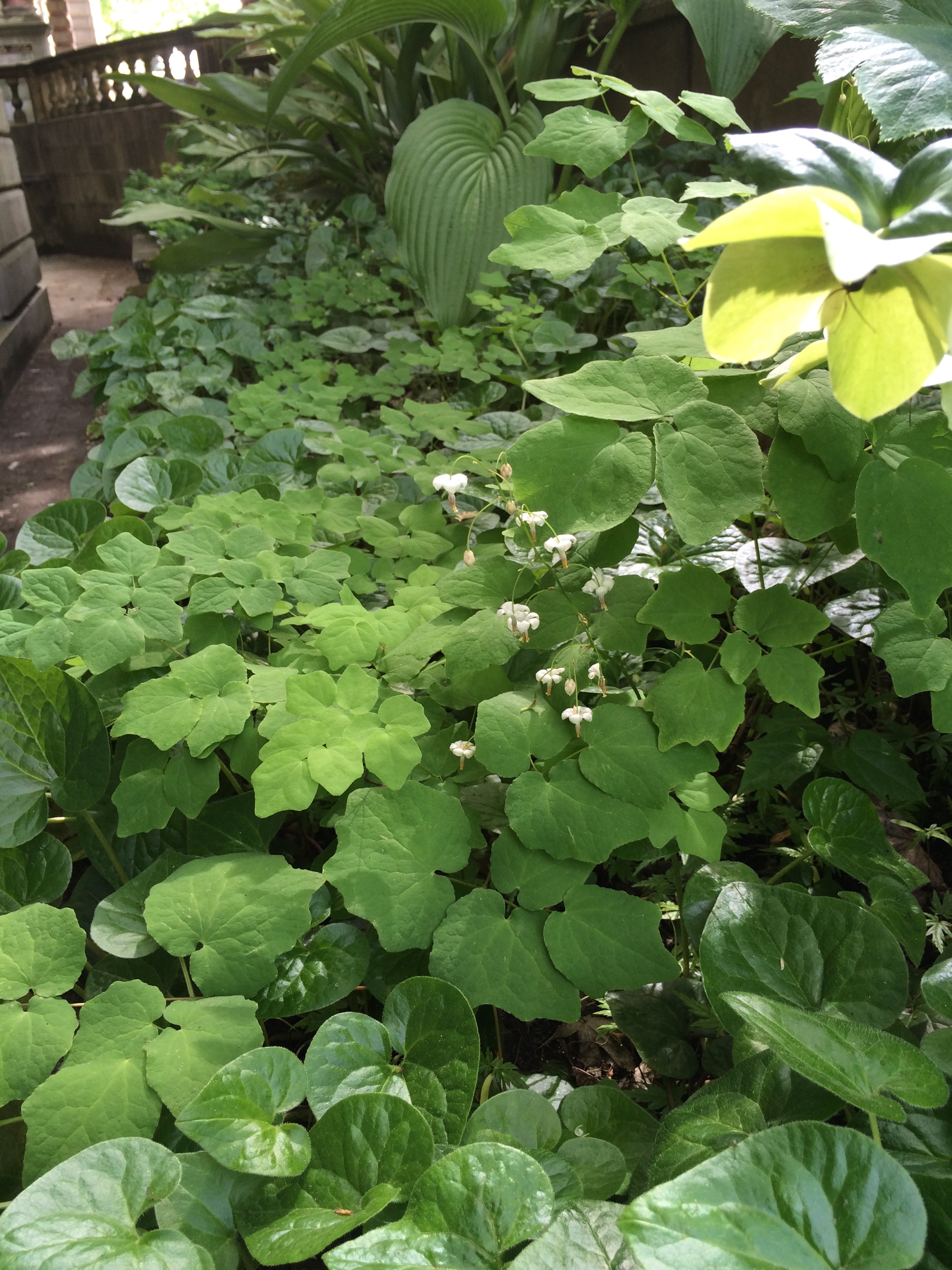 IMG_5188 ← Previous The building side of the two beds is dominated by a mix of Asarum caudatum, Vancouveria hexandra, Helleborus x hybrids and Hosta ‘Jade Cascade’ which have formed a stable community requiring very little maintenance.