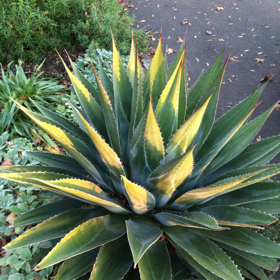 IMG_4190 ← Previous Next → My Agave montana is 15 years old and 4′ across. It is gorgeous with its stiff green leaves, deeply imprinted emphasized with a glaucous waxy coating, prominent brown terminal spines and regular marginal teeth.