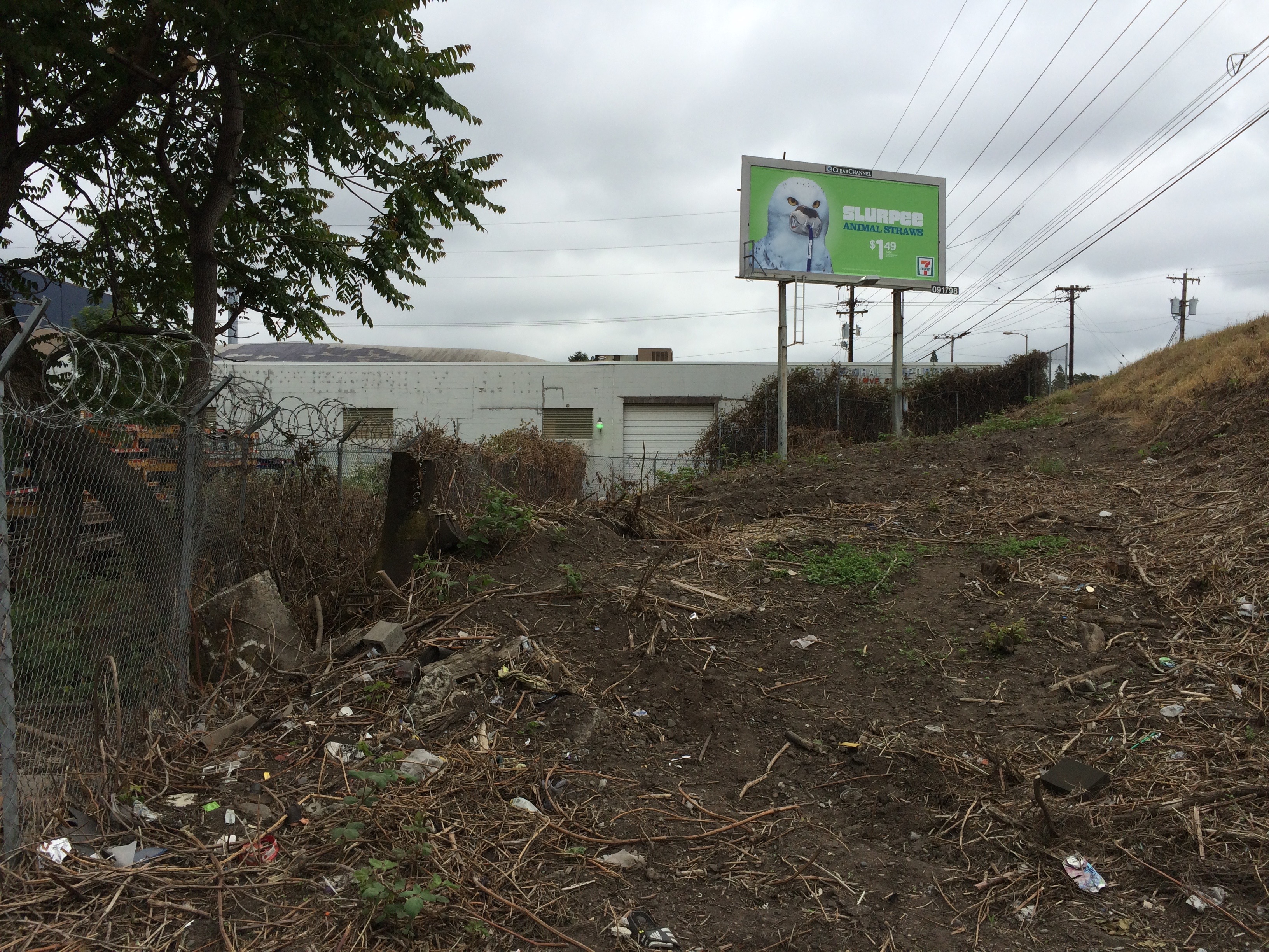 Here’s the same lot the following mid August, the entire surface supporting weeds, most of which have gone to seed by now adding to its own seed bank and moving off site to neighbors.. This problems could be limited by requiring construction to begin within a month of demolition to reduce the time for weed colonization and production of seed.