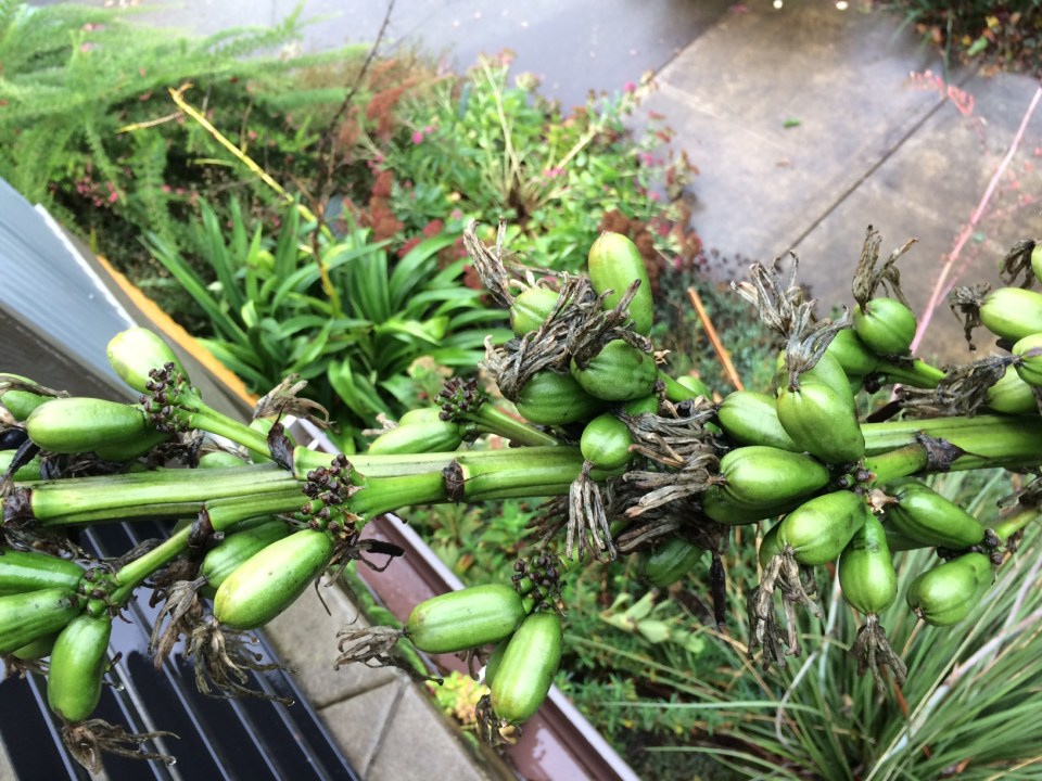 img_7037 ← Previous Next → This shows a portion of the flowering stem toward the top of the inflorescence. The flower scars appear as little ‘discs’ crowded on little protuberances. You can see the unevenness of the pollination that causes this.