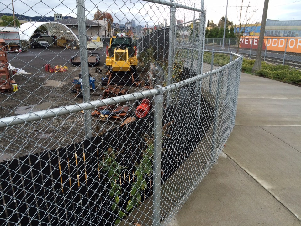 Here’s the dreaded double fence, one permanent and the other screening off this contractor Stacy & Witbeck owned property. Double fencing create impossible to access areas that often become weed strongholds. In this case the state and Portland listed weed, Buddleia, have quickly matured and are seeding this Fall.