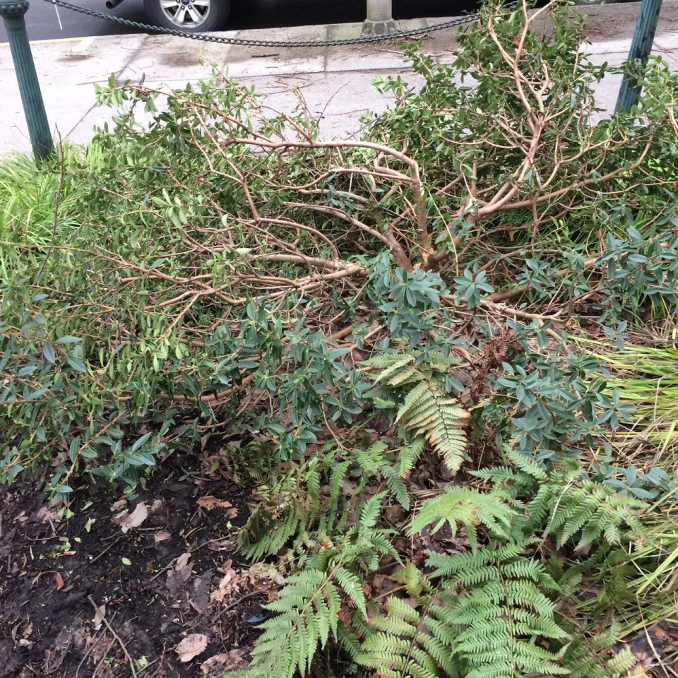 img_7610 ← Previous Next → In the same bed at Chapman Square this softwooded Daphne tangutica was splayed out by the snow with the fallen Elm branch adding to the insult.