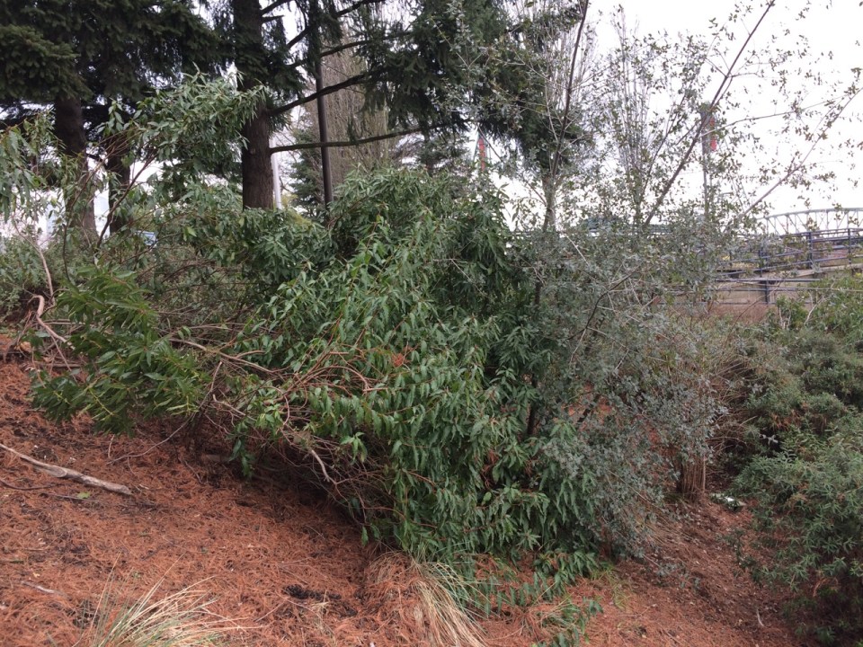 img_7601 ← Previous Next → This show one of the two Beaver pruned Interior Live Oaks with three leaders now and grayish foliage just right of the damaged Cistus ‘Blanche’