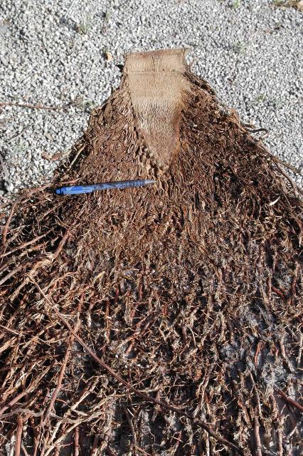 Basal Section of a Palm, credit T. K. Broschat, UF:FAS ← Previous Next → This is a cross-section of the base of a Palm. The pen indicates the point where the tree began as a seedling.