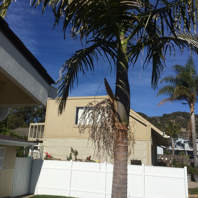 IMG_1017 ← Previous Next → A Palm with a distinct crownshaft, showing the prominent leaf scars where they fall/tear away. The inflorescence emerges vertically at this point before branching and displaying its little flowers.