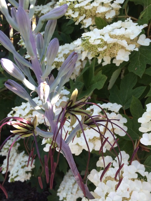 IMG_2873 ← Previous Next → Manfreda undulata ‘Chocolate Chip’ of the Agave family and its long spidery anther filaments.