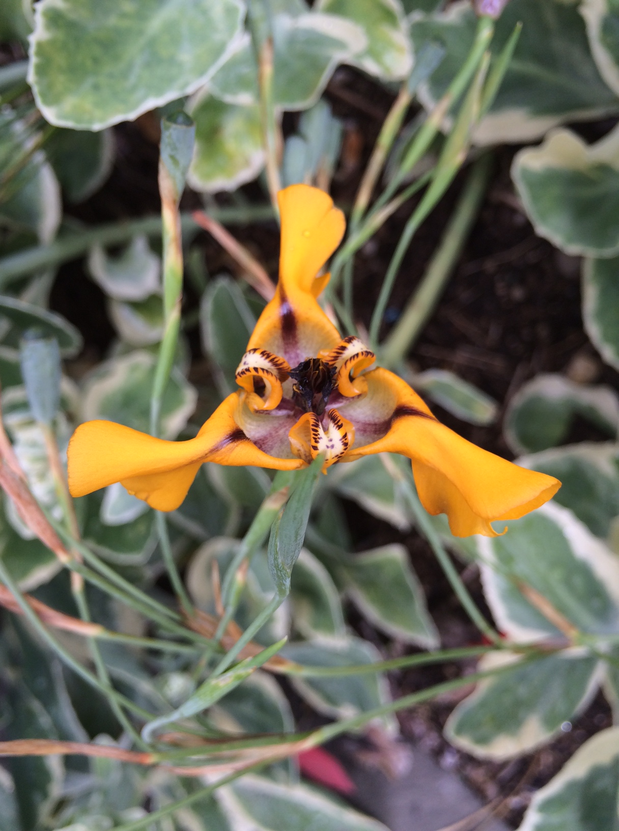 IMG_6315 ← Previous Next → Cypella herbertii, a South American Irid that blooms most of the summer from a stem that keeps on giving. Don’t cut them!!! Again, this shows prominently, its 3-parted structure.