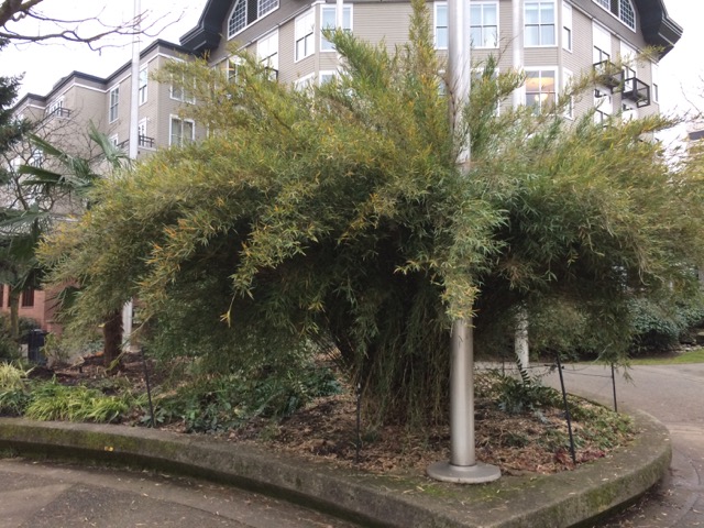 Chasquea culeou ‘Caña Prieta’, once known as the species C. nigracans, has proven hardy here on the Willamette, where it like the Fargesia in the picture above have proven tolerant of the winter wind. This one is pruned up somewhat to show its arching form. You can also see how densely it grows….If you think dividing large over grown ornamental grasses is difficult, this will make that look like a piece of cake!