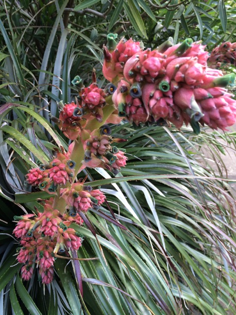 IMG_2628 ← Previous Next → The inflorescence on P. dyckioides it thick and heavy, crowded with pink buds. The flowers open over a few weeks. While the ‘show’ isn’t spectacular the dark teal flowers contrast nicely with the buds.