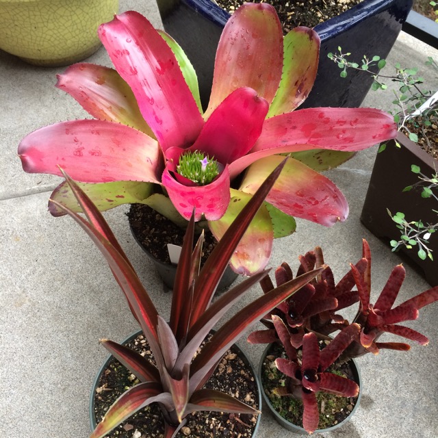 IMG_5560 ← Previous Next → A little unidentified Neoregelia with a red foliage Pineapple, Ananas sp., that I’m still struggling with and a little ‘branched’ Bromeliad i’ve lost the name to…Burl???