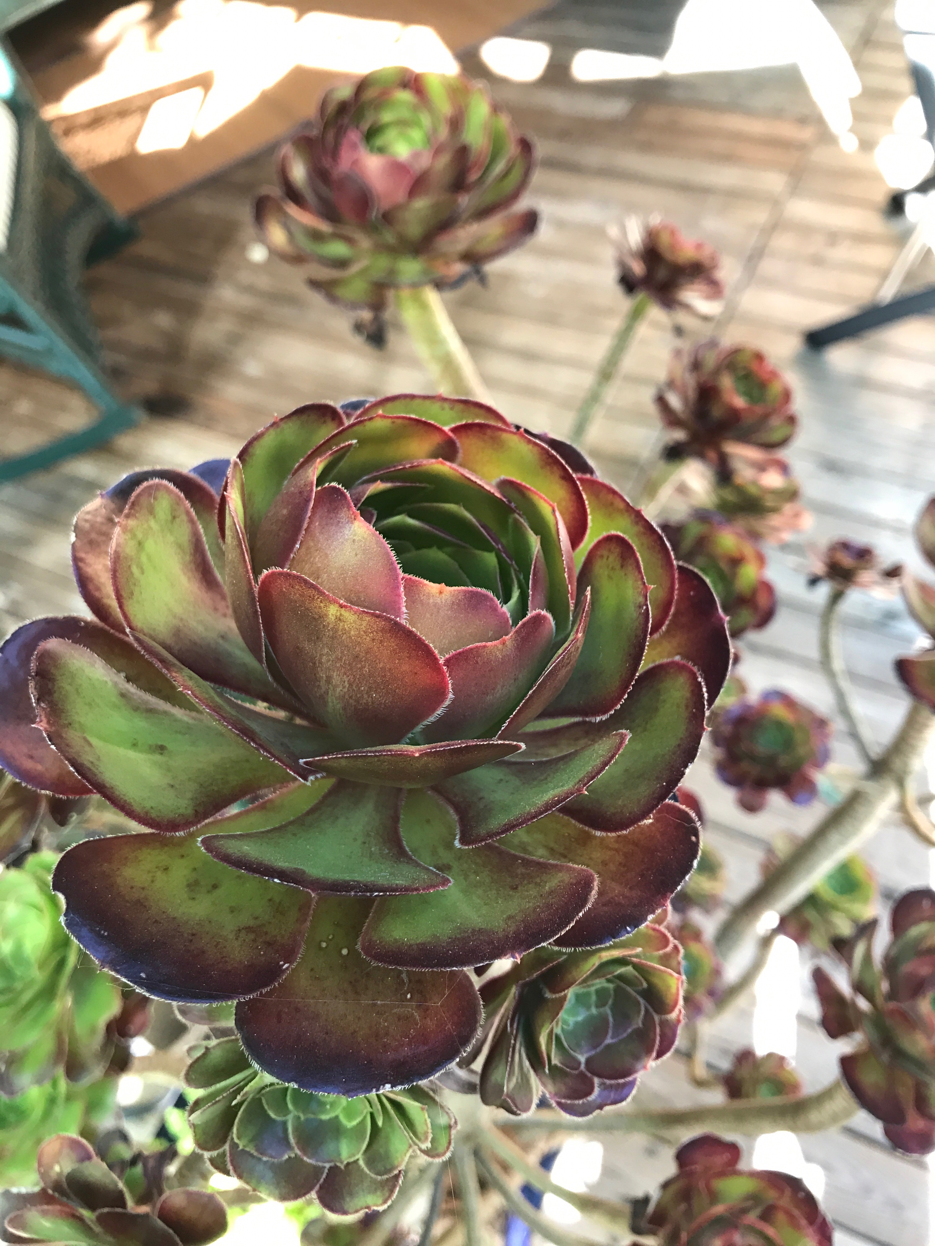 IMG_8855 ← Previous Next → People walk by my garden all of the time and these Aeonium catch their eye. One woman called it that ‘rose’ looking plant. I’ve since acquired more of these and I’m slowly learning that none of them really like our full afternoon sun here.
