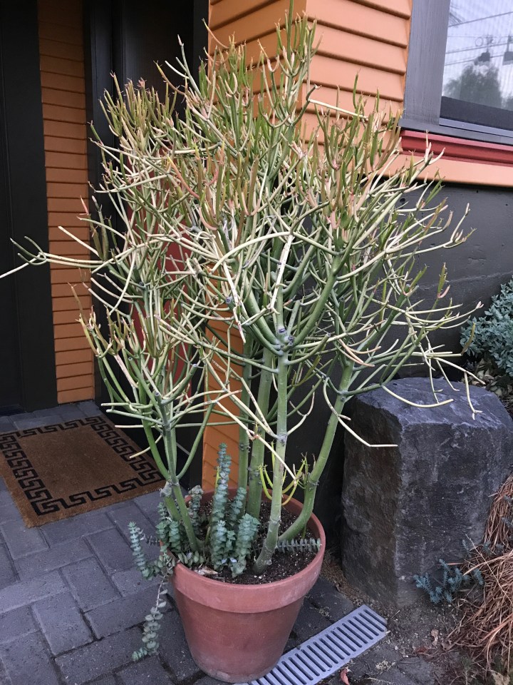 IMG_8860 ← Previous Next → Euphorbia tirucalli, Sticks of Fire, yet another gift full of a toxic latex, is that available to the plant as water for its processes? No spikes, spines or barbs.