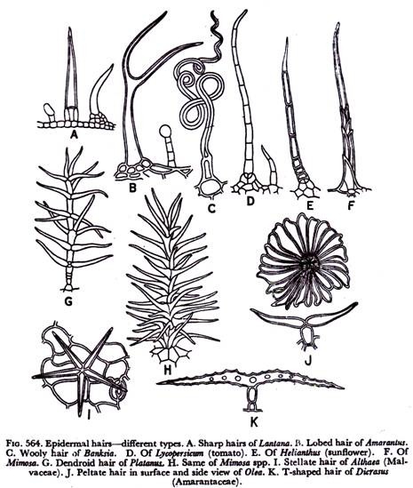 clip_image024_thumb9 ← Previous Next → This diagram shows several different trichome structures from simple single cell hairs, to much more complex multi-celled and branched structures and peltate scales.