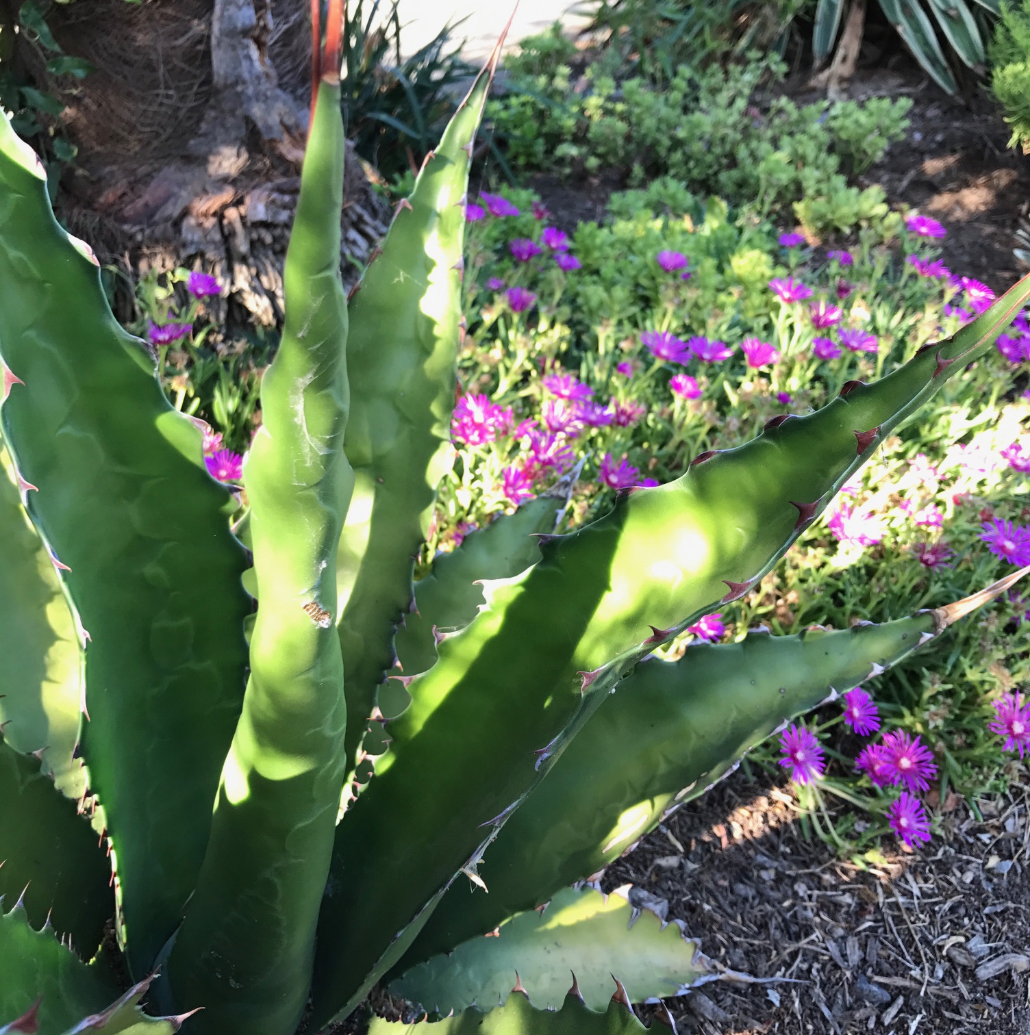 IMG_8918 ← Previous Next → Agave gentryi ‘Jaws’ and Delosperma cooperii both ‘succulents’ that are well adapted to heat and though they do best with an occasional summer soaking.