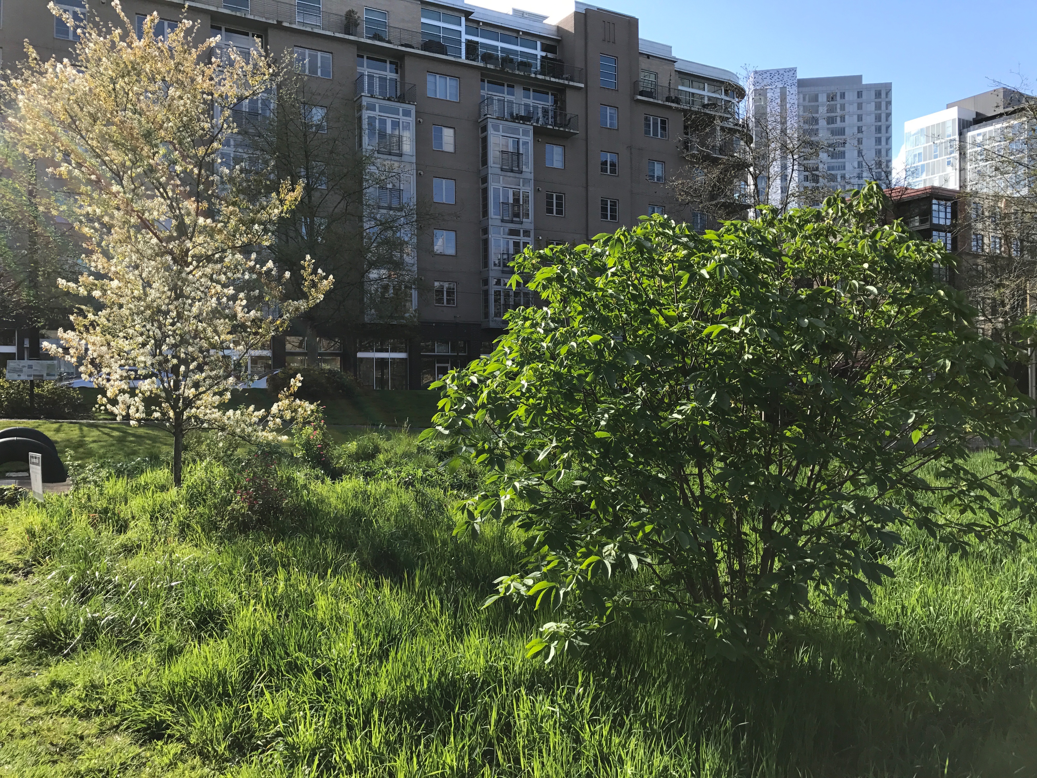 This meadow was installed several years ago at Tanner Springs Park. From the beginning the site was subject to invasion by the exotic Holcus lanatus, Velvet Grass and Canada Thistle, Vetch and others. Its maintenance has been problematic. More recently a group of volunteers has formed to work on the site moving it to a more stable meadow community.