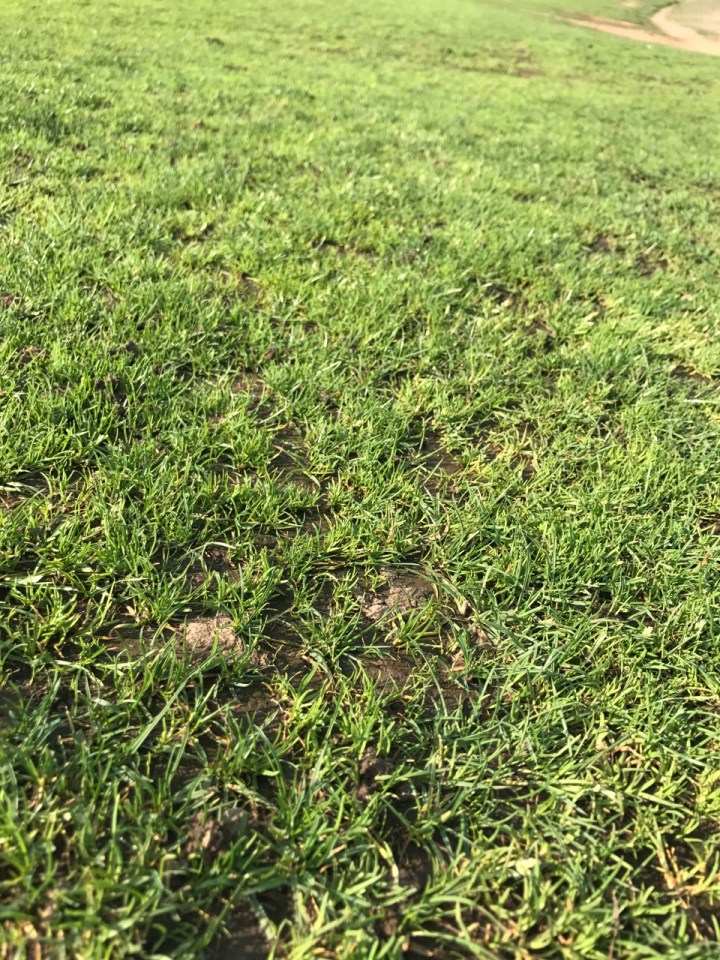 There is little to no Perennial Rye Grass in this picture or anywhere else in the ‘bowl’. Poa annua dominates and has for some time. The soil seed bank is filled with it. The stressful conditions work against the Rye and favor this Poa. A similar situation exists throughout much of this Park. Use and cultural practice favors Poa. Poa annua thrives under short frequent irrigation practice, which is the rule here under much of the summer because overseeding occurs after major events to revitalize over stressed Rye grass turf. The germinating Rye needs frequent irrigation which favors the Poa. The short statured Poa annua reaches flowering height quickly producing seed well before and ‘below’ whatever Lolium perenne is around.