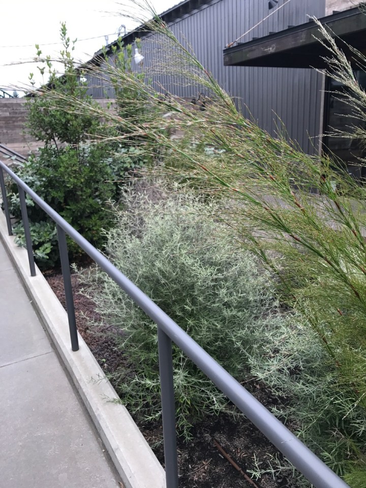 IMG_9191 ← Previous Next → Sean is never shy in his use of southern hemisphere plants nor of mixing them with northern cousins. The Rhodocoma again here with Pittosporum and Eleagnus in a bed that emphasizes and plays off silvery foliage.
