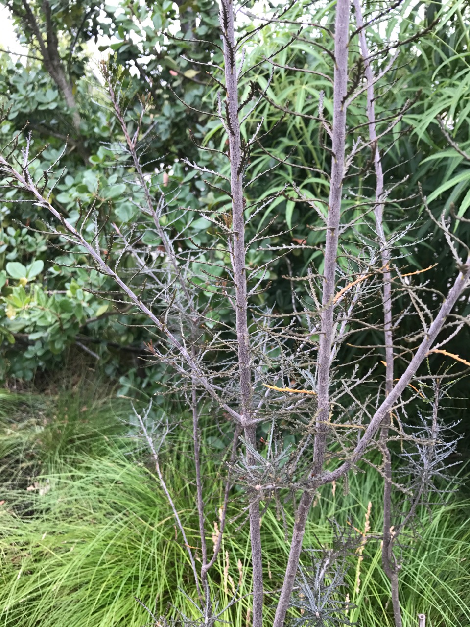 Some of the plantings, like this one near the tasting room ‘house’, is shaded during mid-day by an adjacent high roofed plaza area. Some of this must receive some water as well supporting the Aralia in the background here and the oddly beautiful Pittosporum patulum. The bed across the walkway includes Gardenia. While I enjoy the xeric, more outlying parts of this landscape, it is common practice for gardens to locate more intensively managed landscapes adjacent to more frequented areas and homes, providing more interest there while still providing a higher quality landscape further away that remains more manageable.