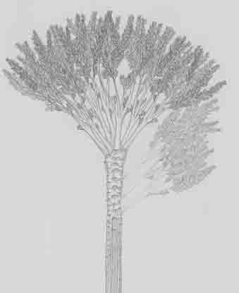 An artist’s rendering of the Gilboa Tree built up from fossil evidence.