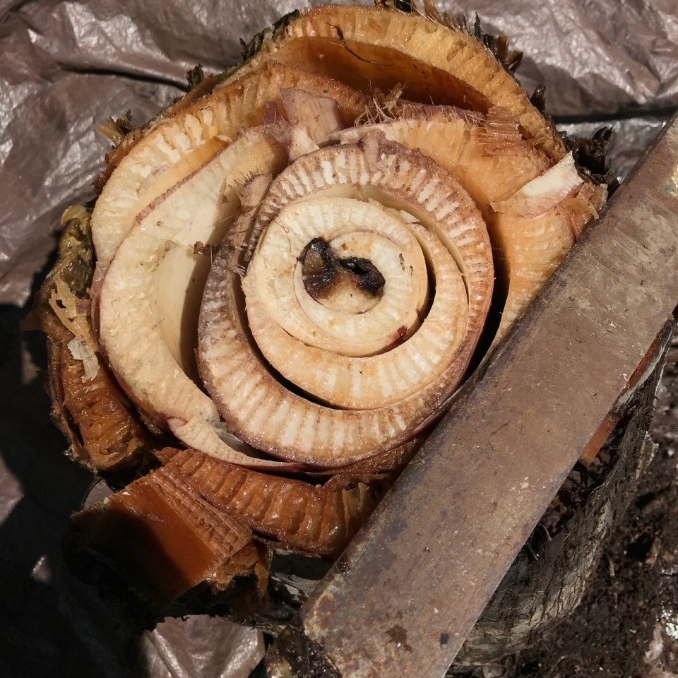With my machete, an essential tool for diagnosing certain plant problems.
