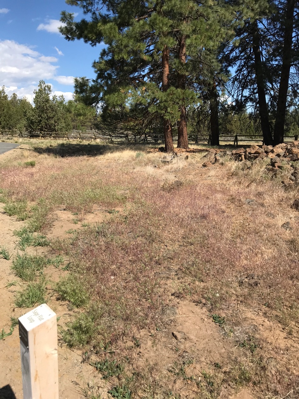 photo ← Previous Next → This area, just outside the main path around the Meadow in the upper Reserve is currently overwhelmed by the invasive Cheatgrass, already turning red with its ripening seed.