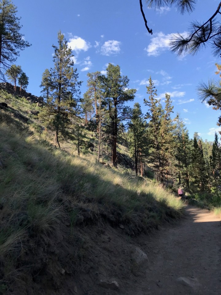 Ponderosa Pine dominates the next swath, top to bottom. As the river ‘digs’ deeper, the canyon broadens mainlining this general slope. The soils vary depending on the composition of the many layers of rock built up here. In general trees require deeper soils.
