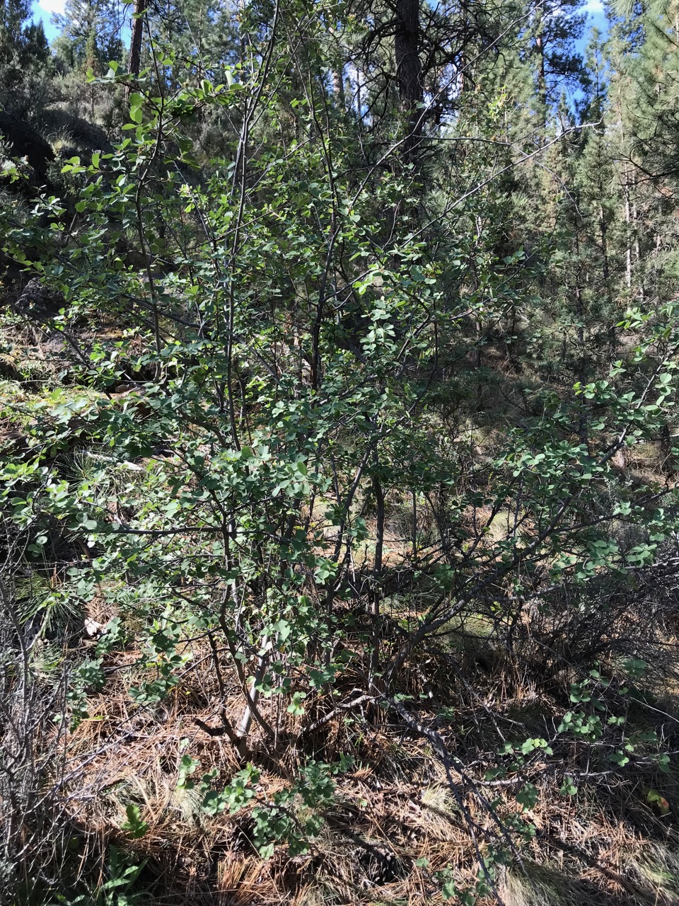 Western Serviceberry, Amelanchier alnifolia, is found frequently in Ponderosa forest and all of the way across the Cascades into the Willamette Valley where it grows with much more vigor to small tree size. This is another important species for native fruit eating birds. Here in the Willamette Valley Cedar Waxwings are currently feasting on our Serviceberry.