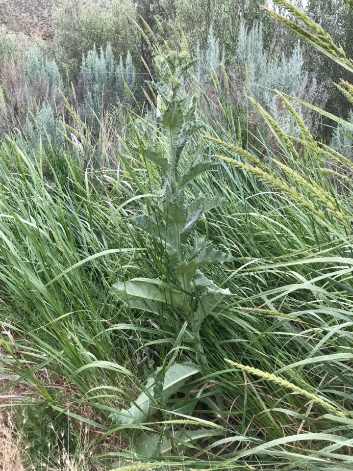 Scotch Thistle, Onopordum acanthium, a small one around 5′ tall.