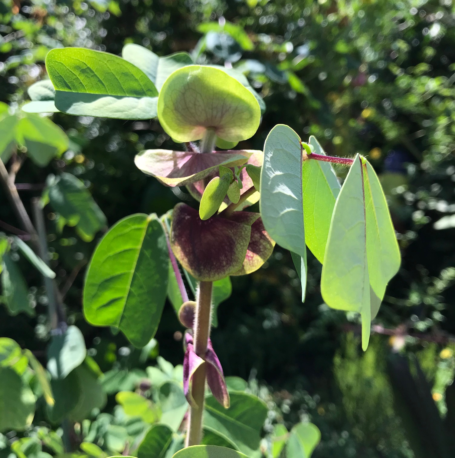 i first came across this curious oddity in Judith McLauchlan’s Victoria garden last year, Amicia zygomeris…kind’a makes you go, ‘whaaat’? Its distinctive leaf shape, the bracts at the base of its petioles and flowers give it a unique look for a plant from Pea Family. Here it is in Dr. Wott’s garden.