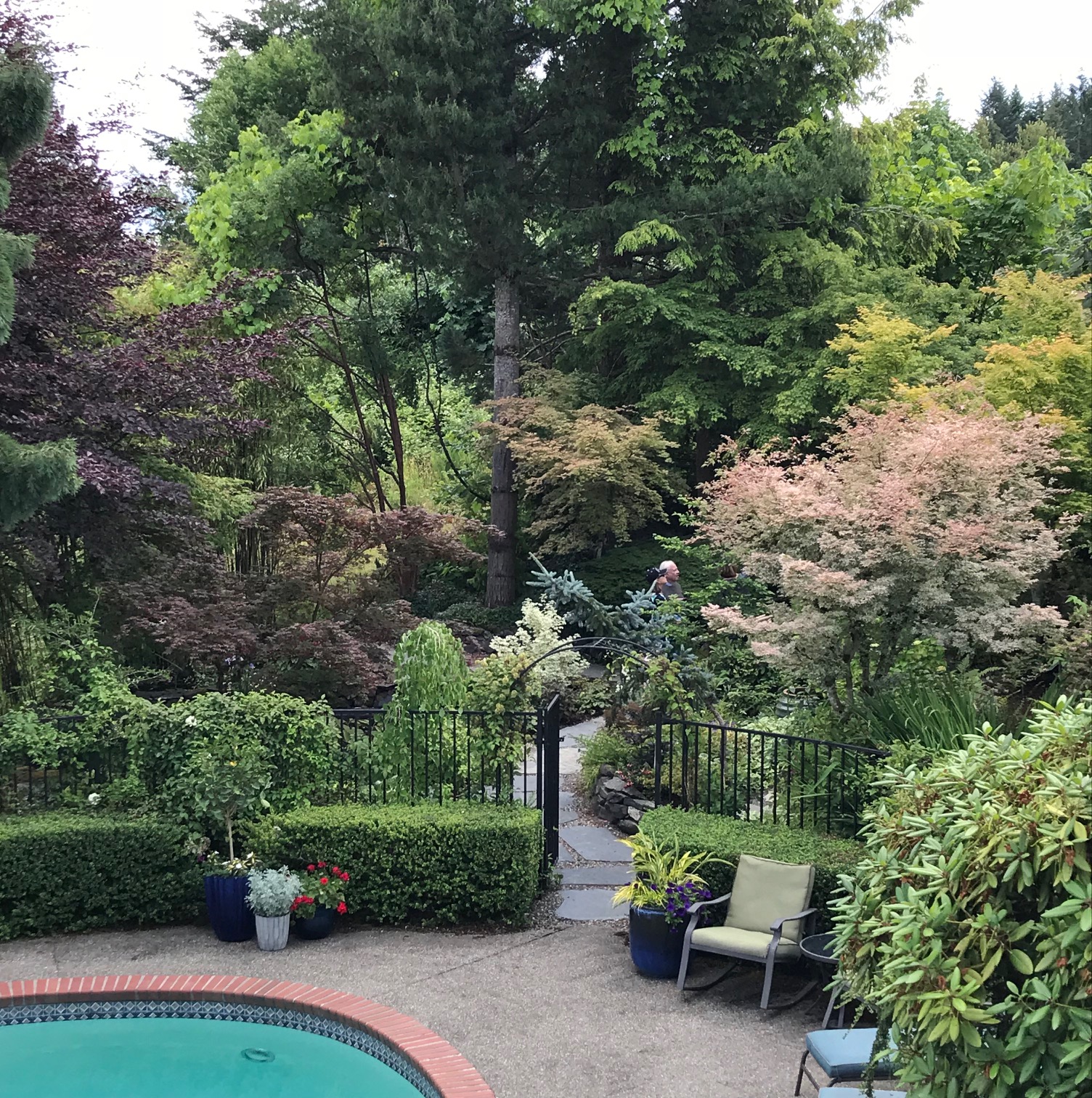 I have to give an honorable mention here to our Air BnB hosts, Victoria and Doug. Their Hideaway, in Lake Forest Park, just west of Bothell, was wonderful, including their garden which was on the tour for the previous Study Weekend in Seattle. Wonderful hosts, Victoria has created a beautifully designed and planted garden that is filled with both the uncommon and dependable of plants that utilize foliage and flower, in good measure, with enough texture and color to bring it alive…without making it too busy. Their’s is primarily a woodland shade garden that abuts public greenspace, which provides the conditions for this garden to win the award for ‘best’, cutest, plant eating bunnies…of course they had the advantage over others because we spent more time here in our home away from home. And, by the way, they have a Kiftsgate Rose that is to die for!