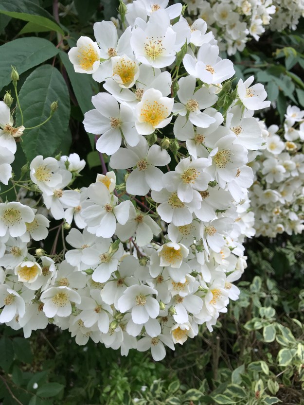 Truly massive heads of flowers on this rose. It is a one time bloomer, but keeps it up for a month or so, depending on the weather.