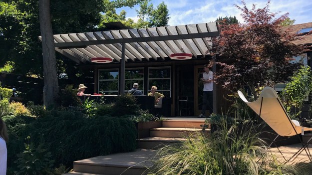 Mid-Century Modern architecture proved to be a dominate theme amongst the open gardens with many lovingly restored and updated, some offering gorgeous views of the Lake and sometimes of the mountains. We stumbled across a sad example of what seems to be happening everywhere on the left coast these days, in Lake Forest Park, when, on an evening walk, we passed by what was once a gorgeous example on the shore of Lake Washington. You can’t buy good taste or common sense!
