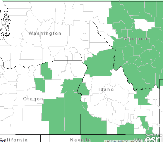 Screen capture of a section of the NRCS Plants Database map for Sphaeralcea coccinea from the above USDA site above showing the counties in which this species has been found growing in situ.  I have not found a site like CalFlora which shows where each plant has been specifically collected from for herbaria use for the PNW.