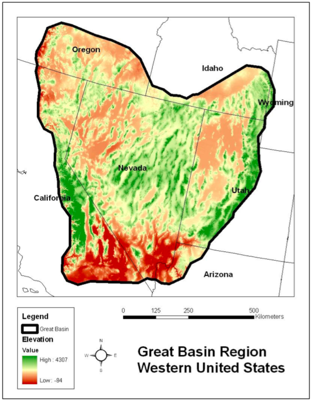 The Great Basin is defined by the fact that it has no outflowing streams to sea. It is a basin that overlays a large part of the Colorado Plateau. A significant portion of its physical geography, what is known as the basin and range country, has been created by a stretching and thinning, east/west, of the earth’s continental plate producing a series of north/south ridges created by the dropping valleys between them.