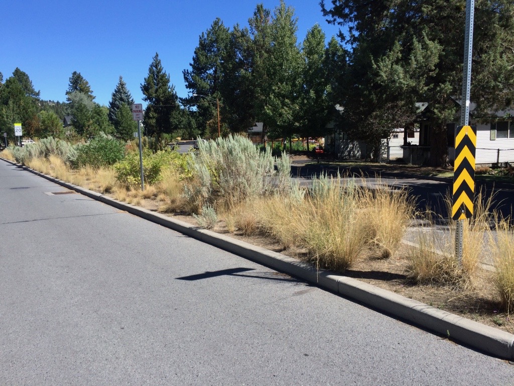 An entirely created Steppe landscape planted in a long narrow median in the street on the west side of Bend, OR. Steppe landscapes are biologically ‘thin’ in comparison to most of Earths other landscapes and biomes. They can be harsh with wide and rapid temperature swings, arid, they are only slightly wetter than a desert climate and as continentally influenced landscapes can get quite cold, that in Oregon averaging 0ºF to -10º and colder.