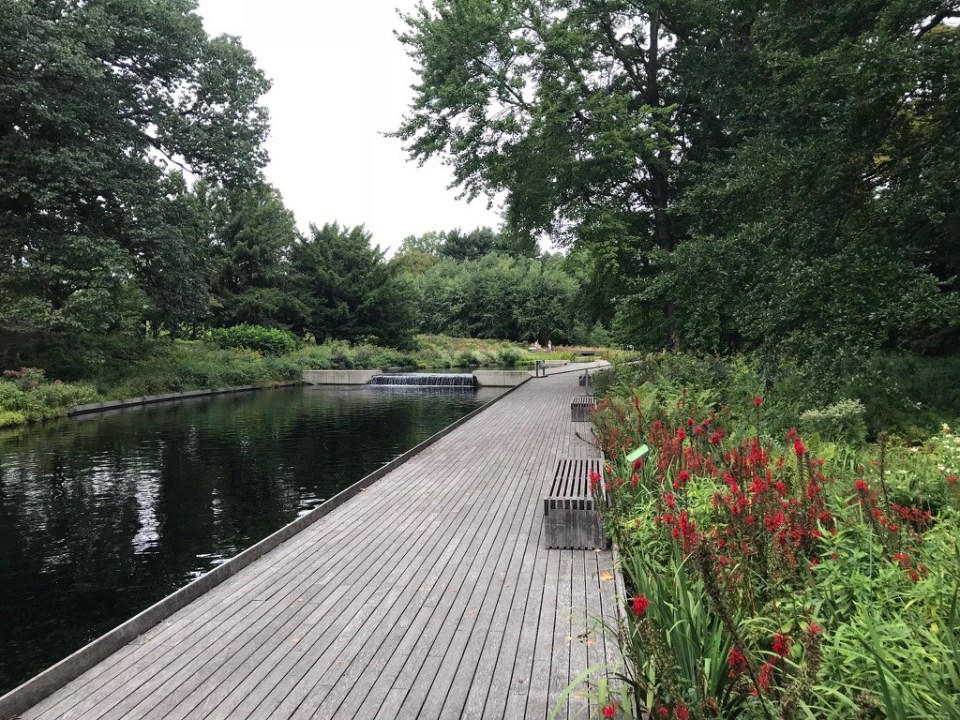 Here the board walk follows the recently reworked ponds in the NYBG’s native plant garden Lobelia cardinalis sparking the scene in September…so different than anything you would find in the maritime Northwest, our rain patterns and base rock responsible for bearing very different soils, even where the ice sheets scraped it down…the patterns and diversity are amazing.