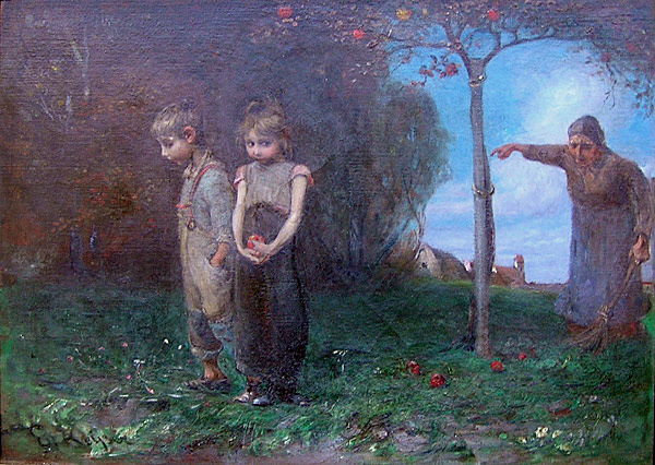 A more modern interpretation of the expulsion story illustrated in very simplistic terms, two children, shame faced sent out of the garden for doing what they were told not to. Such a simple rendition loses much of the detail leaving us with little more than a ‘do what your told’ lesson while the values and beauties of the garden lost, setting up the future as an always repeating story of youthful rebellion against authority, in a world where the garden has little value in and of itself and an almost arbitrary sense of authority is the only thing preventing us from taking what we want.