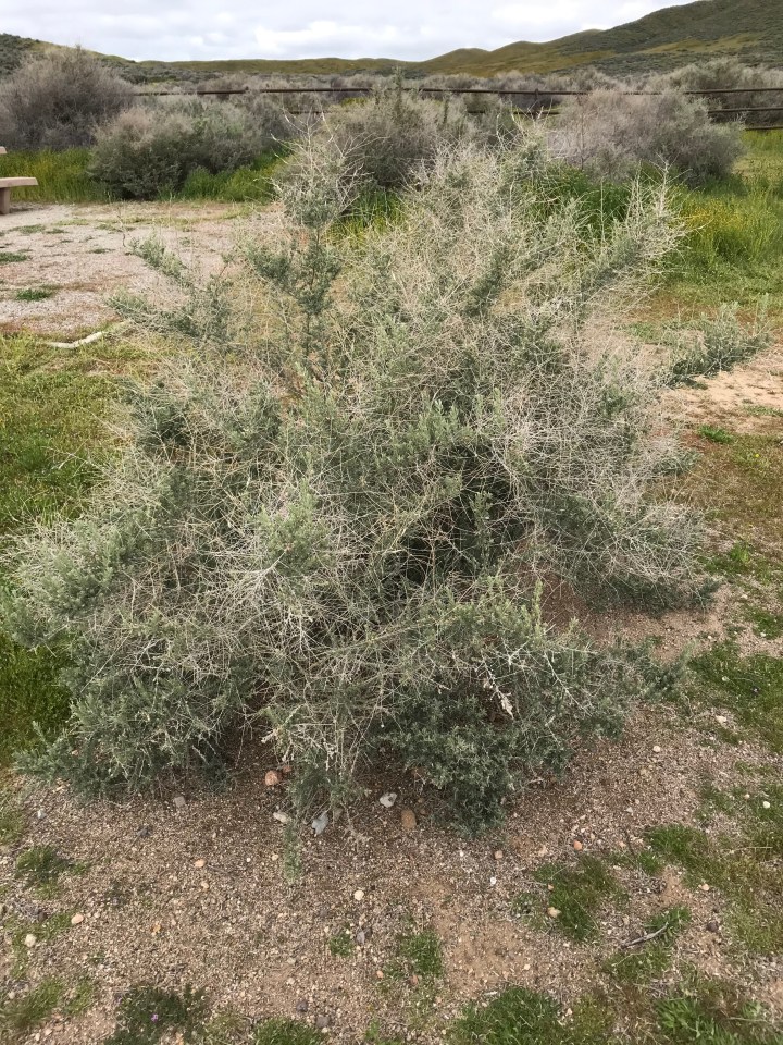 There are 11 different Atriplex spp., Salt Brush, this one is probably A. spinifolia, the Mojave Saltbush. My understanding is that all of ths species occur more commonly as you move to the south end of the Plain. The genus tends to occur on alkaline soils where salts concentrate like here in basins. A. spinifolia tends to occur in more arid areas like the Mojave.