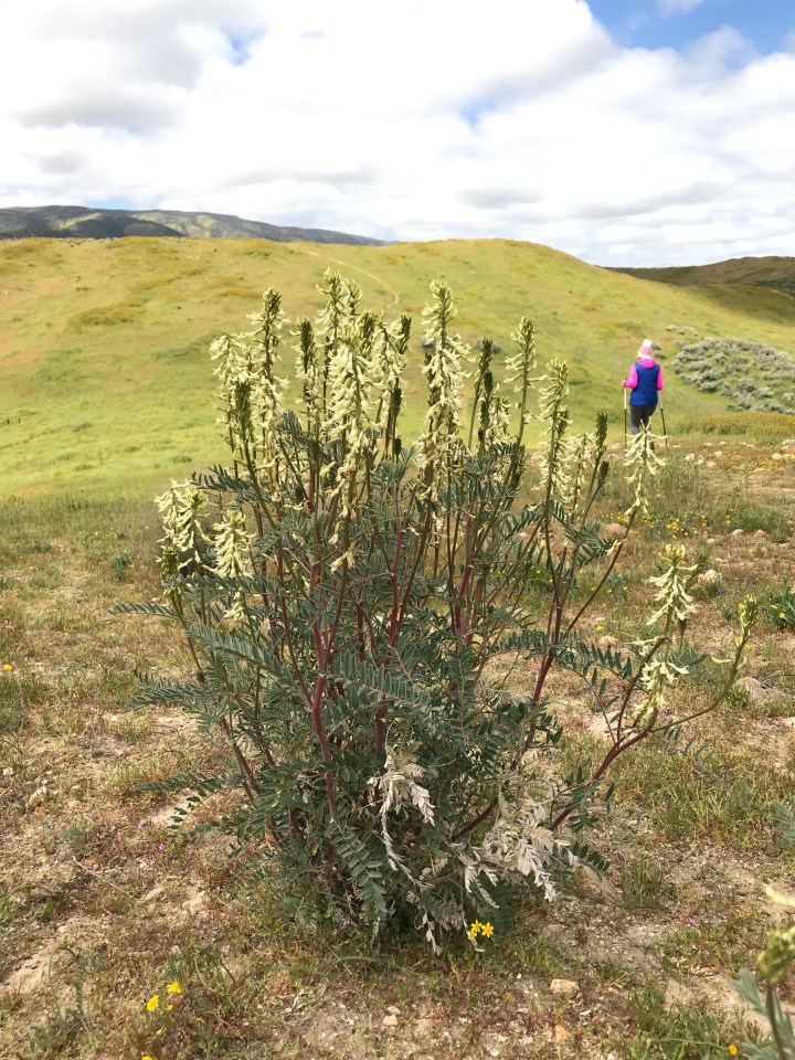 Astragalus oxyphysus; Mt. Diablo Milk-vetch above KCL Campground, Carrizo Plain. These generally stand alone or are widely spaced. Much of the lower hills are completely untreed with little woody shrubs either. The soil, as you can see, is very thin and stony.