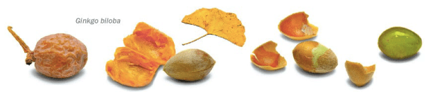 Every species can have its own peculiarities in this process while sharing most of it. In Ginkgo their single naked ovule ripens into a drupe-like seed with a fleshy outer layer, its ‘not a fruit’, and a thin, smooth, cream-colored, hard inner layer. These drop free to the ground in the fall, long after their early spring pollination, after the first fall frost. At this time these seeds generally contain immature embryos and cannot be germinated. Embryo development continues while seeds on the ground are exposed to temperatures normally encountered during fall and early winter. Embryo maturation is usually complete about 6 to 8 weeks after the seeds drop (Lee 1956; Maugini 1965)