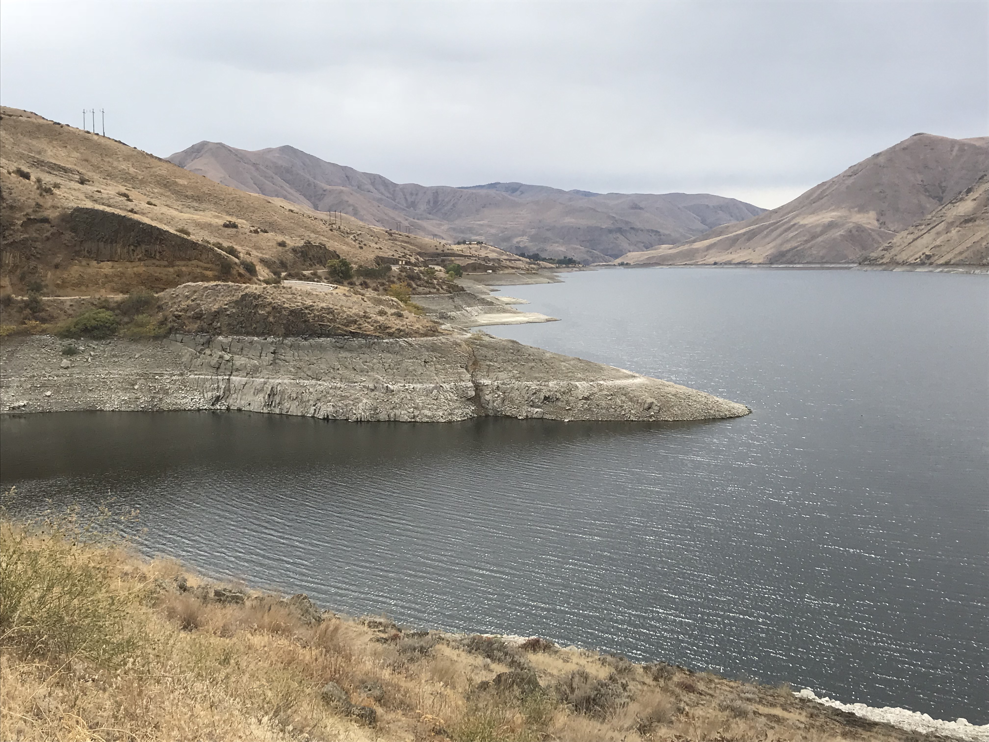 The reservoir behind Brownlee Dam on the Snake River. Engineered solutions like this one treat the landscape like another engineered component, drowning the riparian landscape. The upland band that lines it, stands out starkly. The bare rock exposed, its layer of thin soil gone and bereft of plants. Our actions in the landscape always have consequences…we must weigh their costs carefully each time.